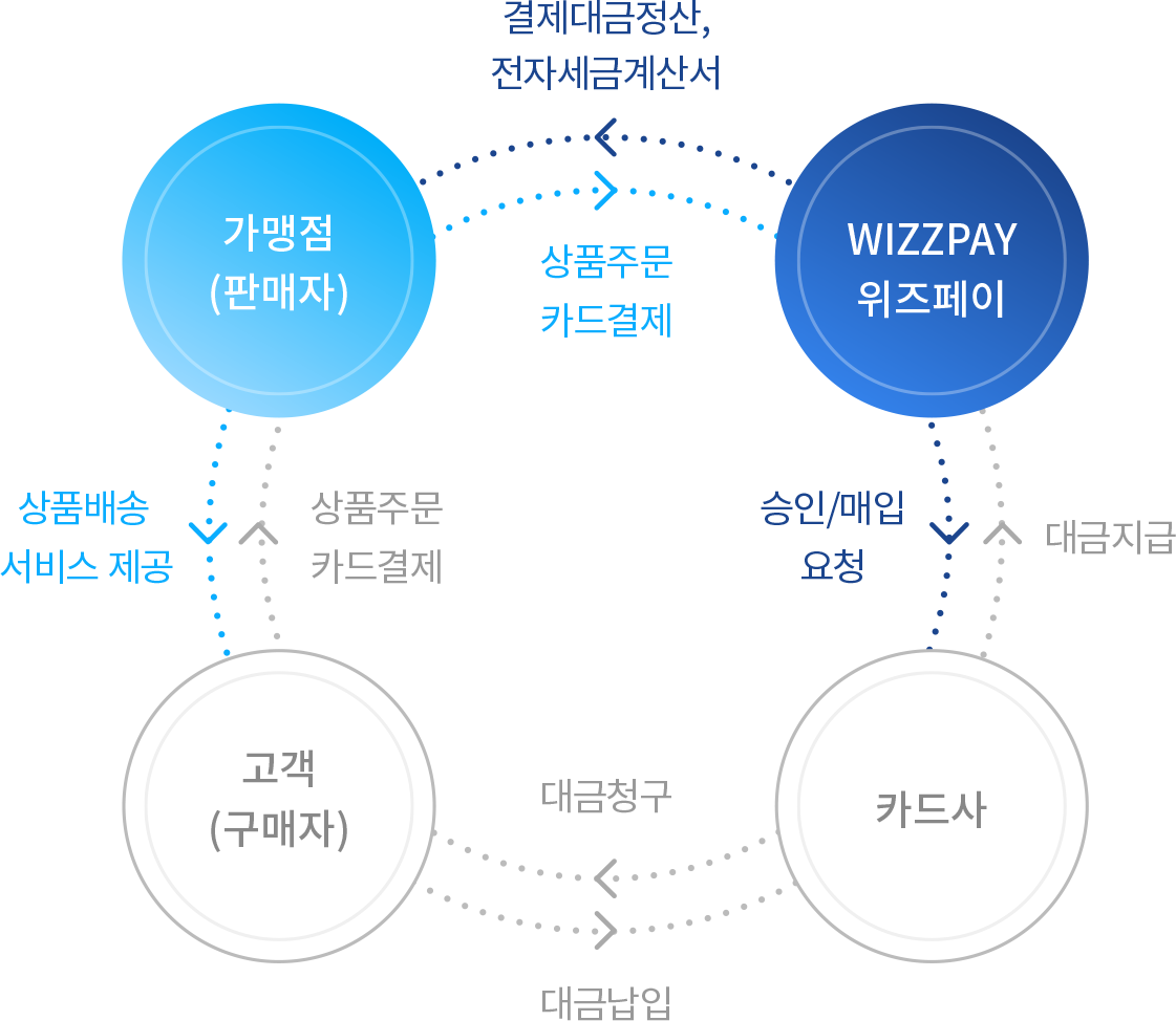 위즈페이 전자결제 서비스로 가맹점과 고객 간 상호 신뢰 향상이 가능합니다.